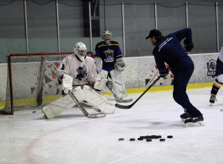 В процессе тренировки также разбираются предпочтительные виды бросков, в зависимости от игровой ситуации, умение выбрать правильную позицию и точку поражения ворот. Бросковые тренировки проводятся индивидуально и в мини-группах, в бросковых зонах и на арендованных ледовых площадках.